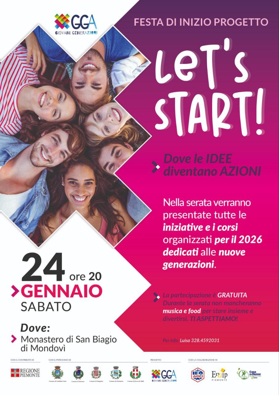 Invito alla festa di inizio progetto “Giovani Gener-Azioni GGA” – Sabato 24 gennaio 2026 ore 20 @Monastero di San Biagio di Mondovì