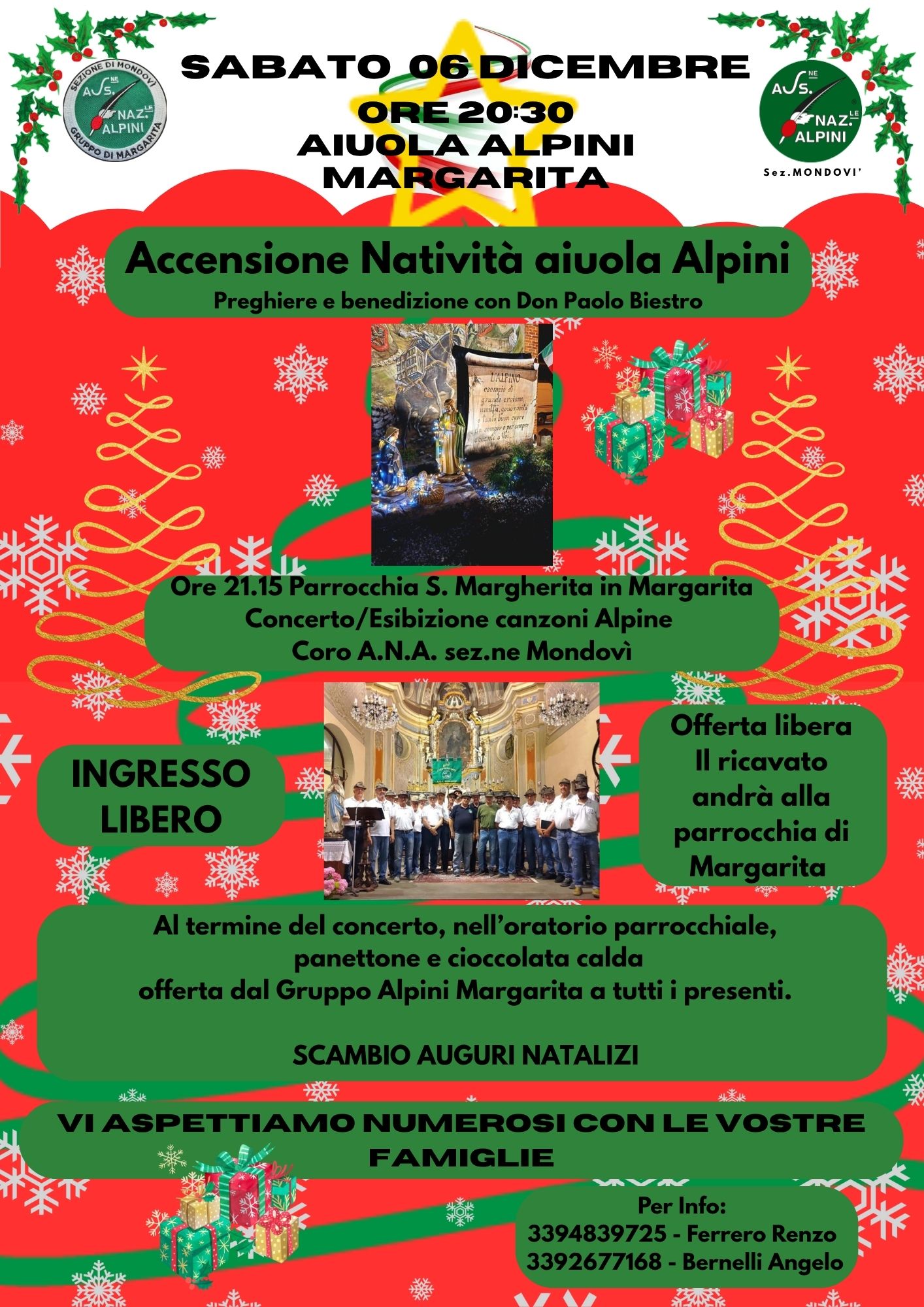 Al termine del concerto, nell'oratorio parrocchiale, panettone e cioccolata calda offerta dal Gruppo Alpini Margarita a tutti i presenti.