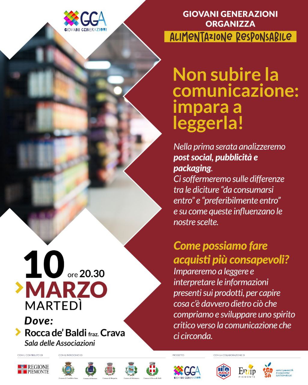 Giovani Generazioni (GGA) organizza un ciclo di 4 INCONTRI GRATUITI dedicati all'Alimentazione Responsabile.